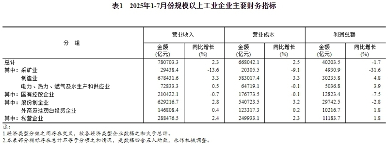 1—7月份,全國(guó)規(guī)模以上工業(yè)企業(yè)實(shí)現(xiàn)利潤(rùn)總額40203.5億元,同比下降1.7%(按可比口徑計(jì)算,詳見附注二)。